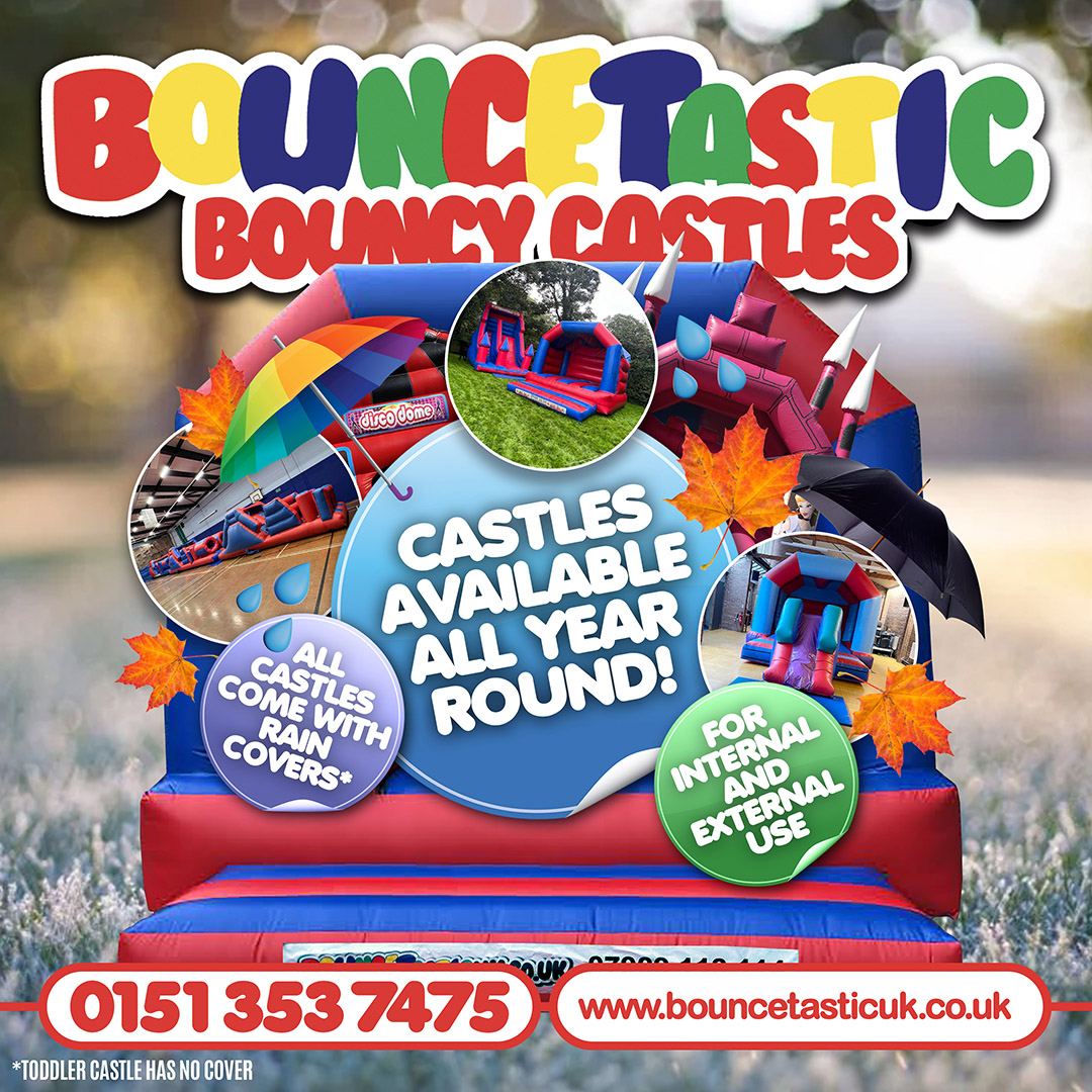 Choose Bouncetastic Bouncy Castles for indoor and outdoor bouncy castle hire in Liverpool all year round — the safe, reliable and weather-ready choice for every season.
