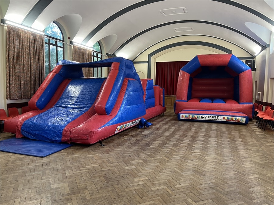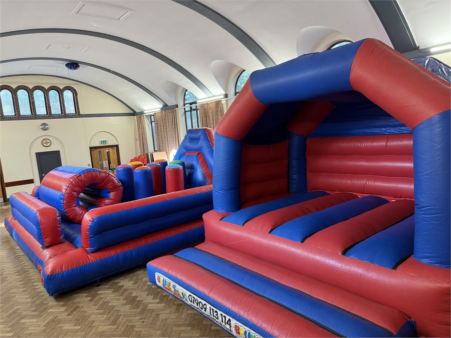 All Saints Church Hall is spacious and versatile, making it ideal for hosting parties with entertainment such as bouncy castles and assault courses. With ample room, you can create the perfect layout to accommodate your activities. It's ideal for two bouncy castles or a bouncy castle and assault course package.