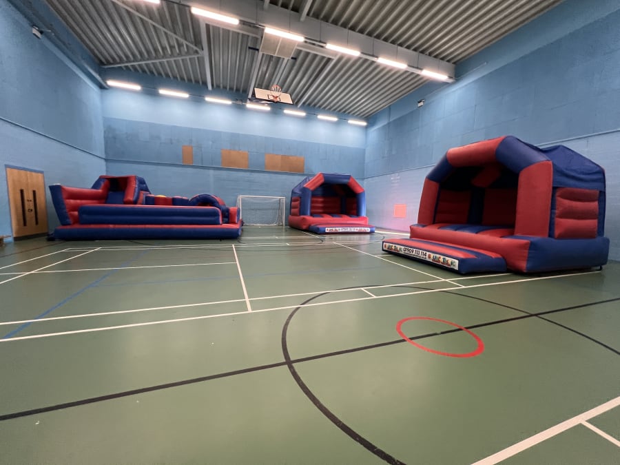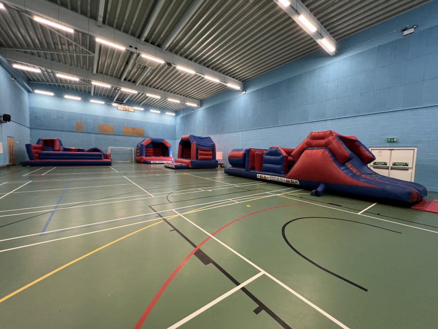 The sports hall at Dixons Croxteth Academy is equipped with 5-a-side football, badminton, and netball markings, making it versatile for a variety of sports and activities. This flexibility is further enhanced when you incorporate our inflatables into your event, offering guests a unique and engaging experience.
