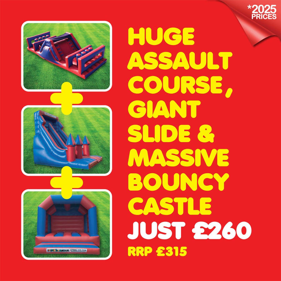 By combining these three magnificent inflatables into our Ultimate Adventure Package, we've created an experience that surpasses ordinary fun. And with our reduced package price, you can enjoy the thrill of all three inflatables at a fraction of the individual booking cost. We believe in providing unbeatable value to everyone, no matter what event you're hosting! Whether you're planning a birthday party, a community event, or a corporate gathering, this package promises endless excitement for all ages.