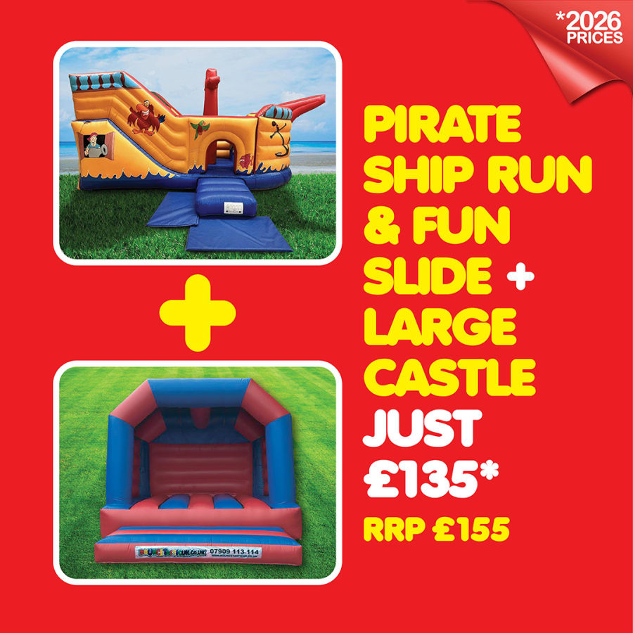Pirate Ship Run & Fun Slide + Large Bouncy Castle – Inflatable Hire Package