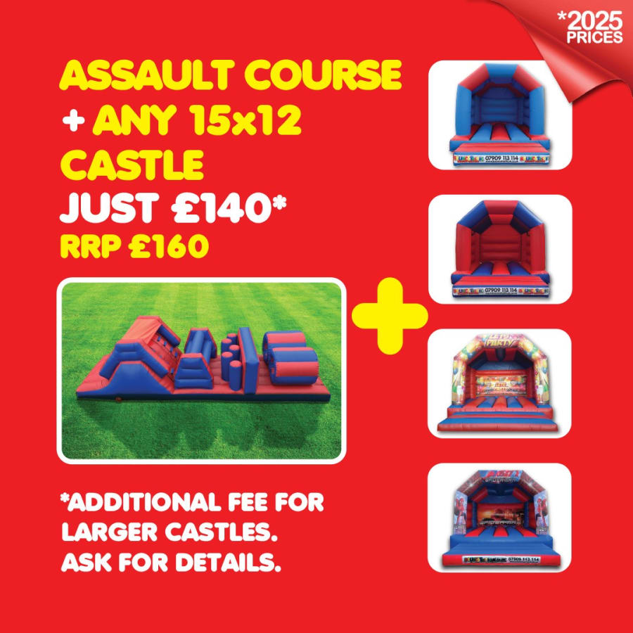 Can you believe it? Bouncetastic Bouncy Castles Liverpool are providing you with a mind-blowing deal that you will not want to turn down! You can hire the exciting MEGA Assault Course along with any 15x12 Bouncy Castle of your choice for an amazing price of £140.Why wait? Call us today at Bouncetastic Bouncy Castle Hire Liverpool, to seal the deal!